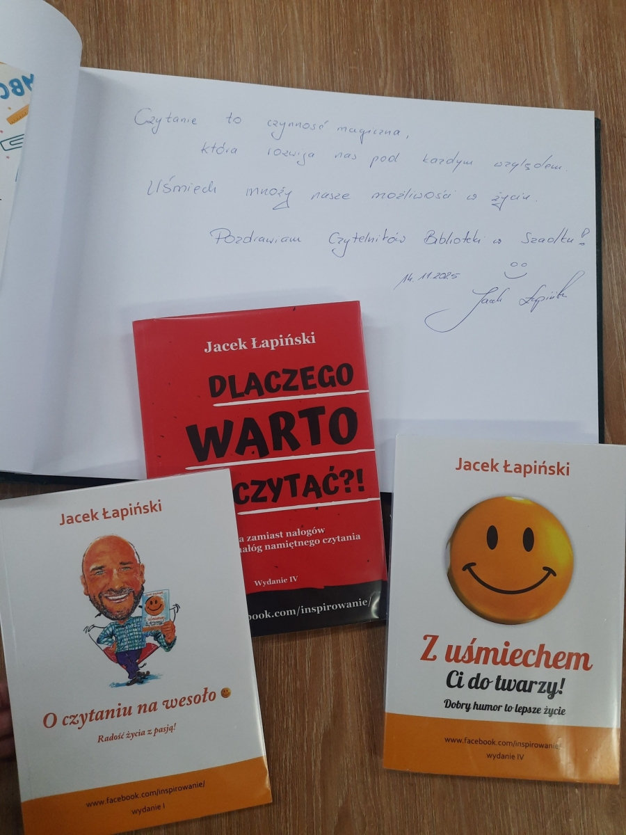 Książki zakupione podczas spotkania autorskiego z Jackiem Łapińskim, które odbyło się w naszej bibliotece. Zapraszamy do wypożyczania. Więcej informacji o naszym księgozbiorze na: https: //xn--szukamksiki-4kb16m. pl/SkNewWeb/bstart/1405