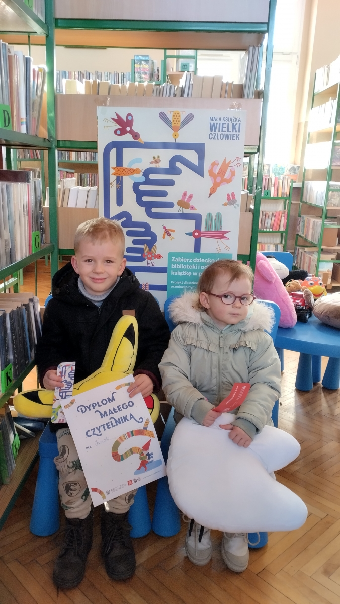 Gratulacje dla Kornela, który otrzymał Dyplom Małego Czytelnika. Natomiast Florianna dołączyła do grona uczestników akcji „Mała książka-wielki człowiek” i odebrała Wyprawkę Czytelniczą. Serdecznie gratulujemy i witamy w gronie Czytelników naszej biblioteki.