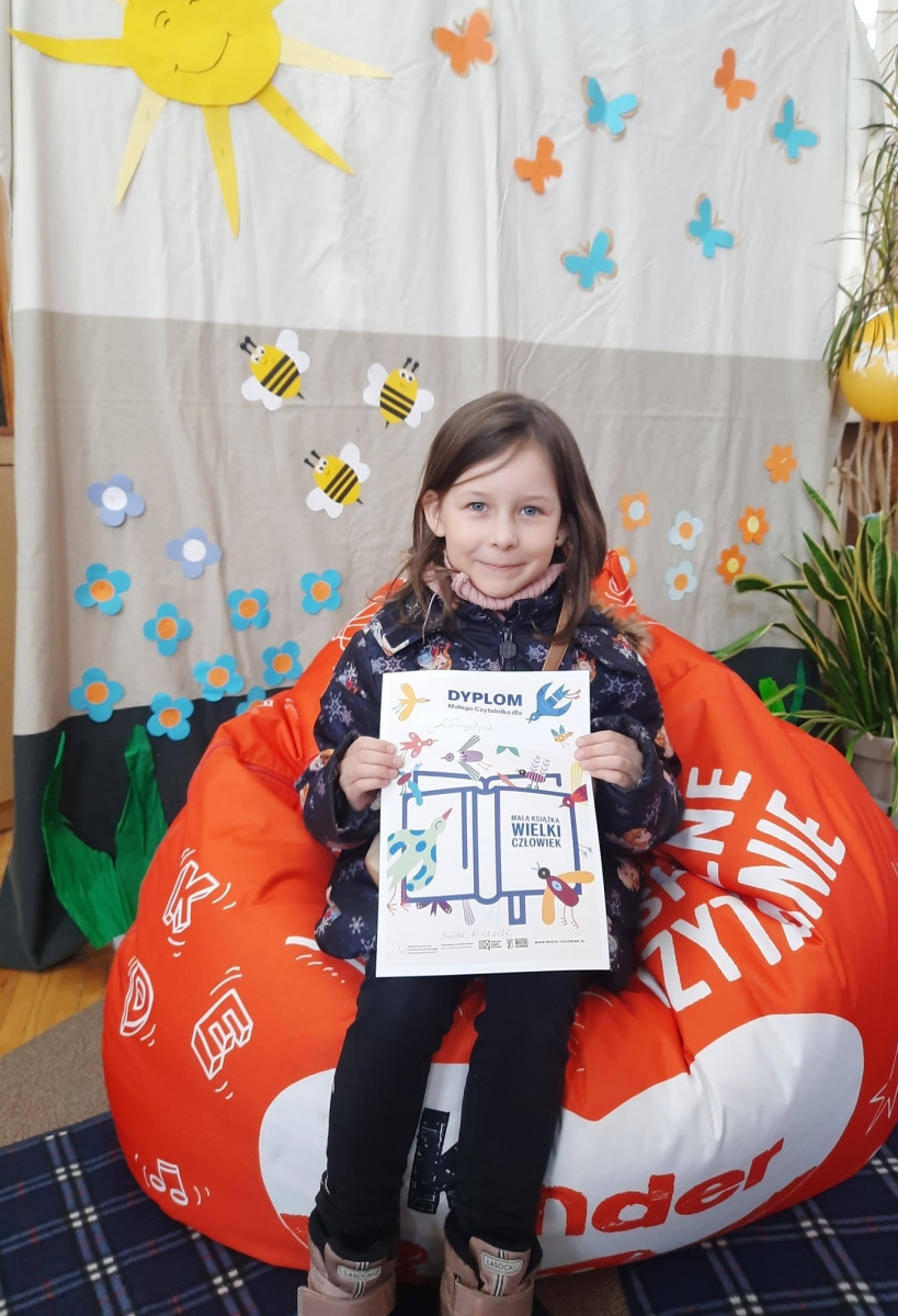 Dla Klementynki to kolejny już dyplom, który otrzymała w ramach akcji „Mała książka – wielki człowiek”. Jesteśmy dumni z takich czytelników. Gratulujemy i życzymy mnóstwa fascynujących przygód na dalszych literackich wyprawach.
