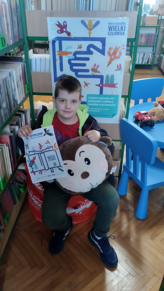 Z dumą prezentujemy Oliwiera, który ukończył wyzwania Małej Książki - Wielkiego Człowieka, zbierając komplet naklejek na swojej karcie. Gratulujemy i życzymy mnóstwa fascynujących przygód na dalszych literackich wyprawach.