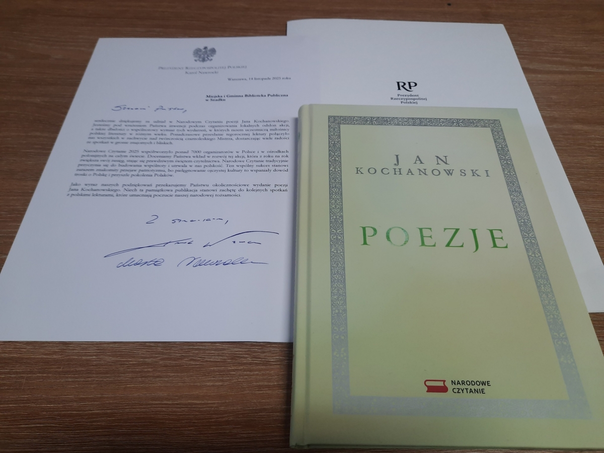 Z przyjemnością informujemy, że w ramach udziału w tegorocznej edycji Narodowego Czytania, otrzymaliśmy od Pary Prezydenckiej specjalny list okolicznościowy i prezent – pięknie wydany egzemplarz „Poezji” Jana Kochanowskiego. Bardzo dziękujemy i zapraszamy wszystkich do czytania klasyki.