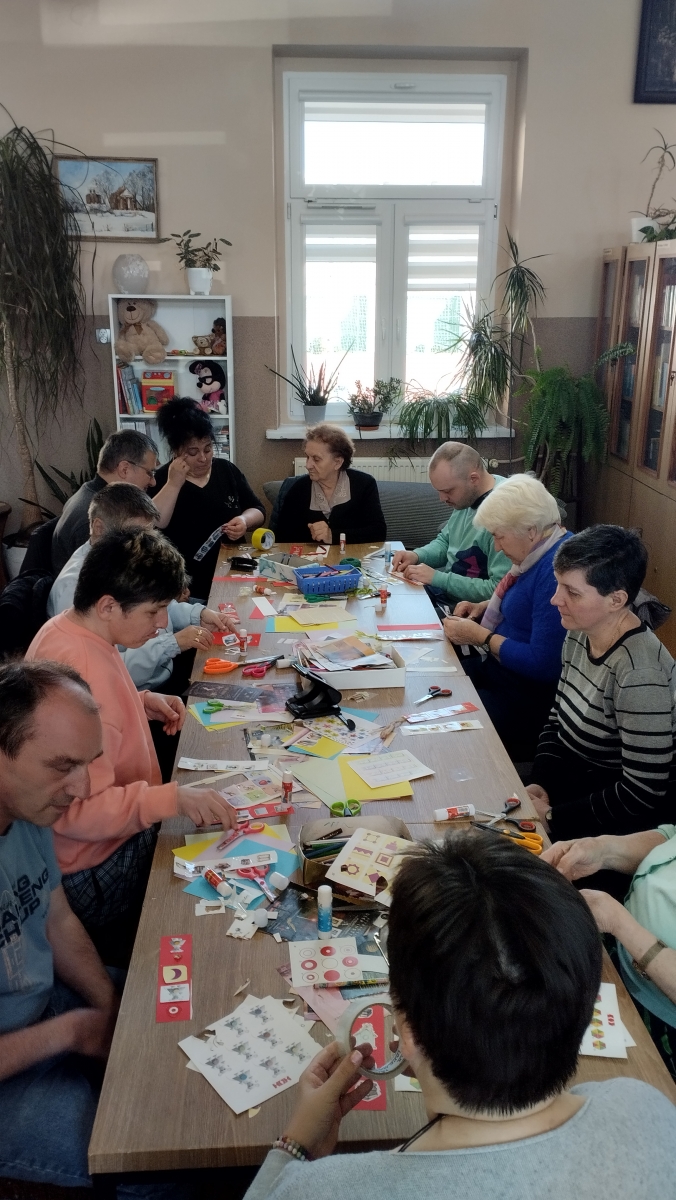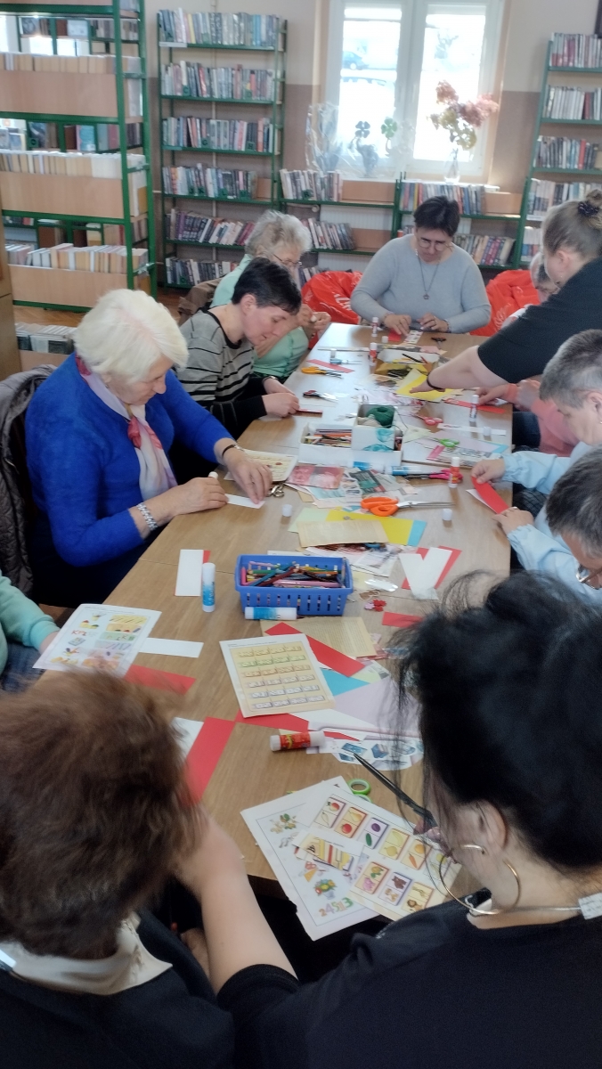 23 kwietnia obchodzimy Światowy Dzień Książki i Praw Autorskich. Z tej okazji wspólnie ze Środowiskowym Domem Samopomocy w Przatówku postanowiliśmy spędzić ten dzień na warsztatach z projektowania zakładki do książek. Na początku rozmawialiśmy o książkach, naszym księgozbiorze, później każdy z uczestników zabrał się za wykonanie zakładki. Dziękujemy za wspólnie spędzony czas i za słodki poczęstunek.