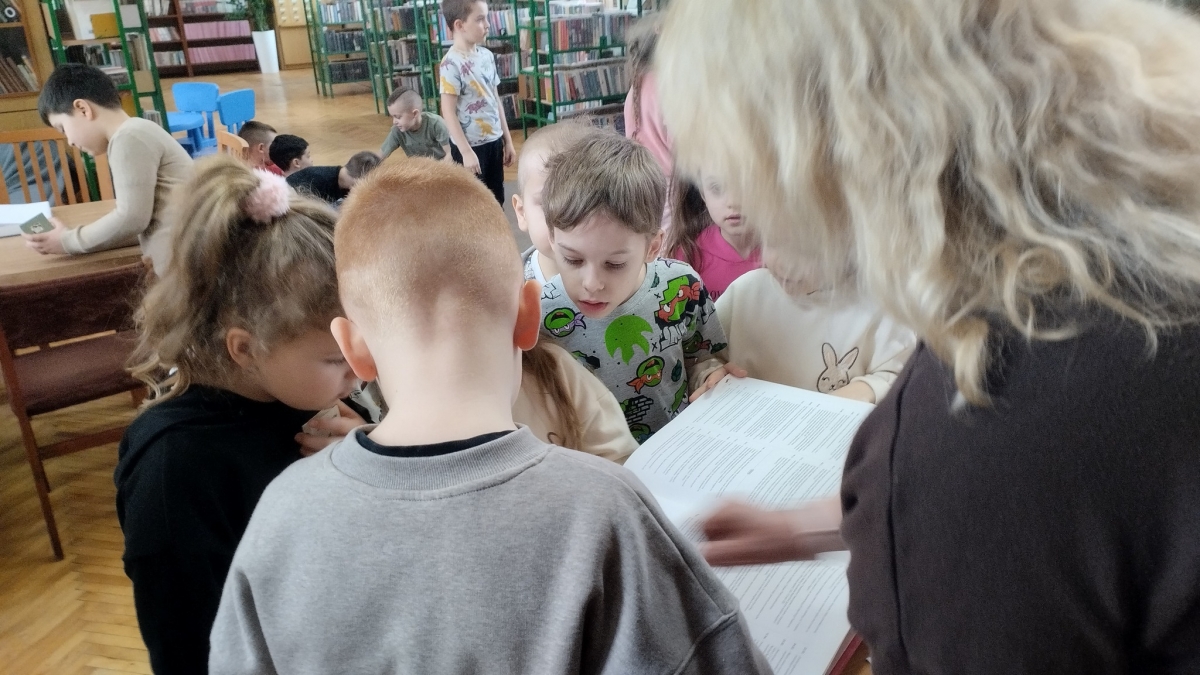 Dzieci zapoznały się z zasadami zachowania w bibliotece, poznały poszczególne działy oraz odkryły nasze nietypowe zbiory – w tym najmniejszą i największą książkę w kolekcji.